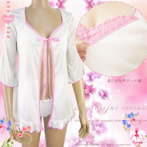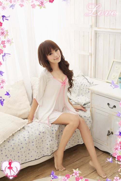 ◆Description: Adorable rayon sleepwear robe with flared short sleeves & pink trimmed edging.