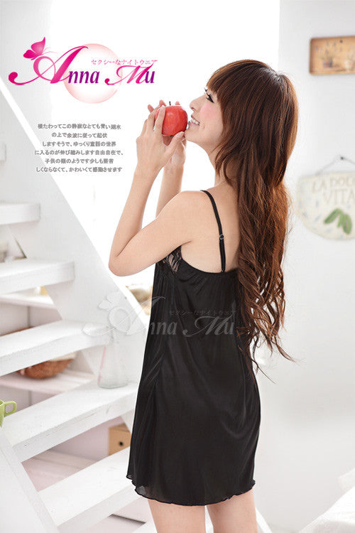 ◆Description: Glamorous rayon chemise accentuated with lace trimmed bodice.