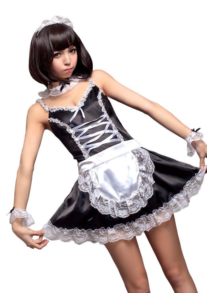 LINGERIECATS Black with White Lace 5pcs sexy Maid Cosplay Costume Set (Free Sport Pant Gift)