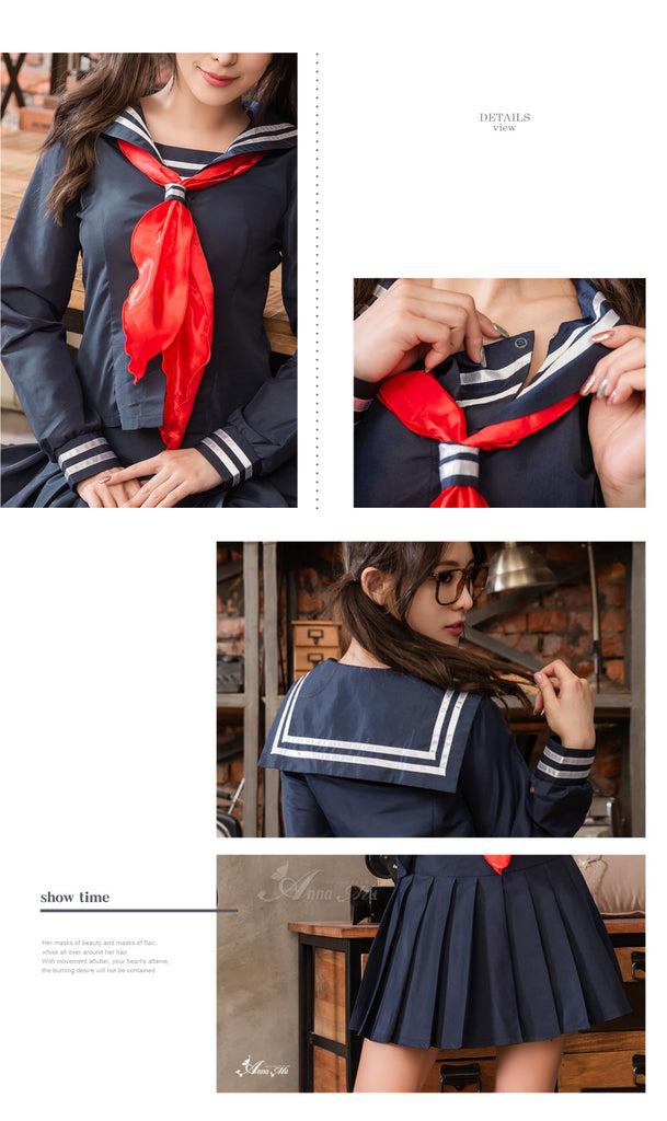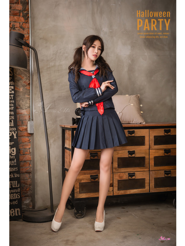 Lingeriecats Halloween Classic Blue School Student Girl Uniform with Red tie in 3 Pieces.
