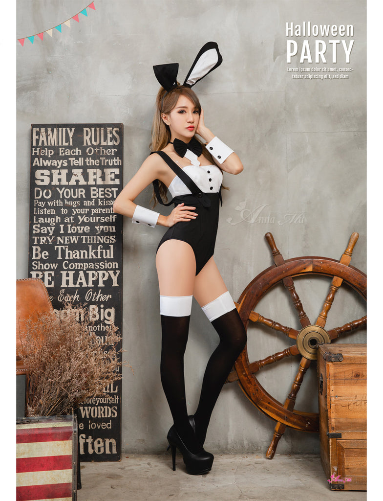Lingeriecats Halloween Sexy Black Bunny 6 Piece Costume - White Ear
